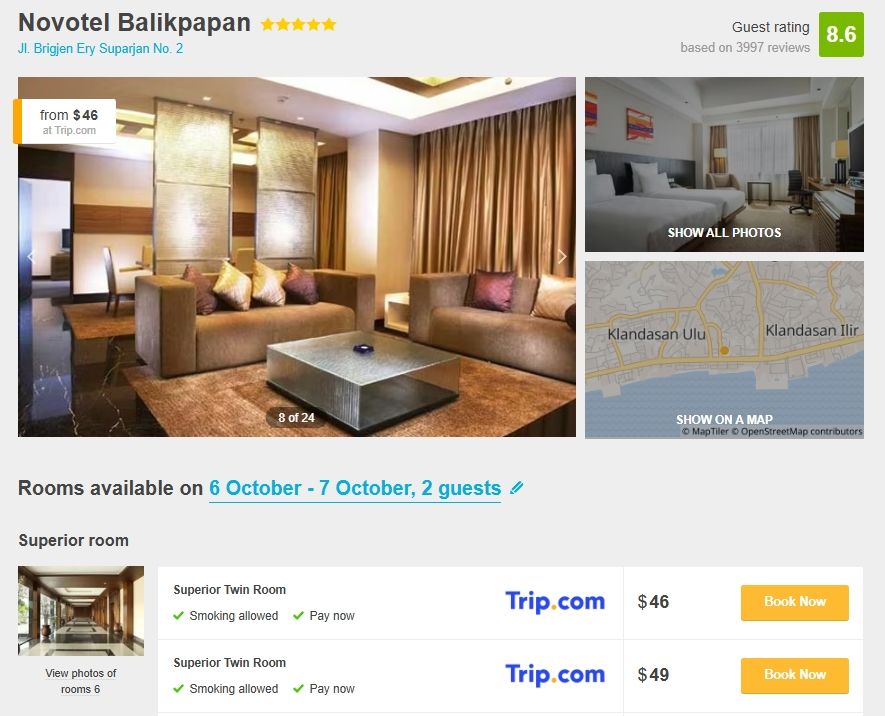 We found a luxury 5-star hotel in Borneo for just US$ 46 per night / room (incl. tax)