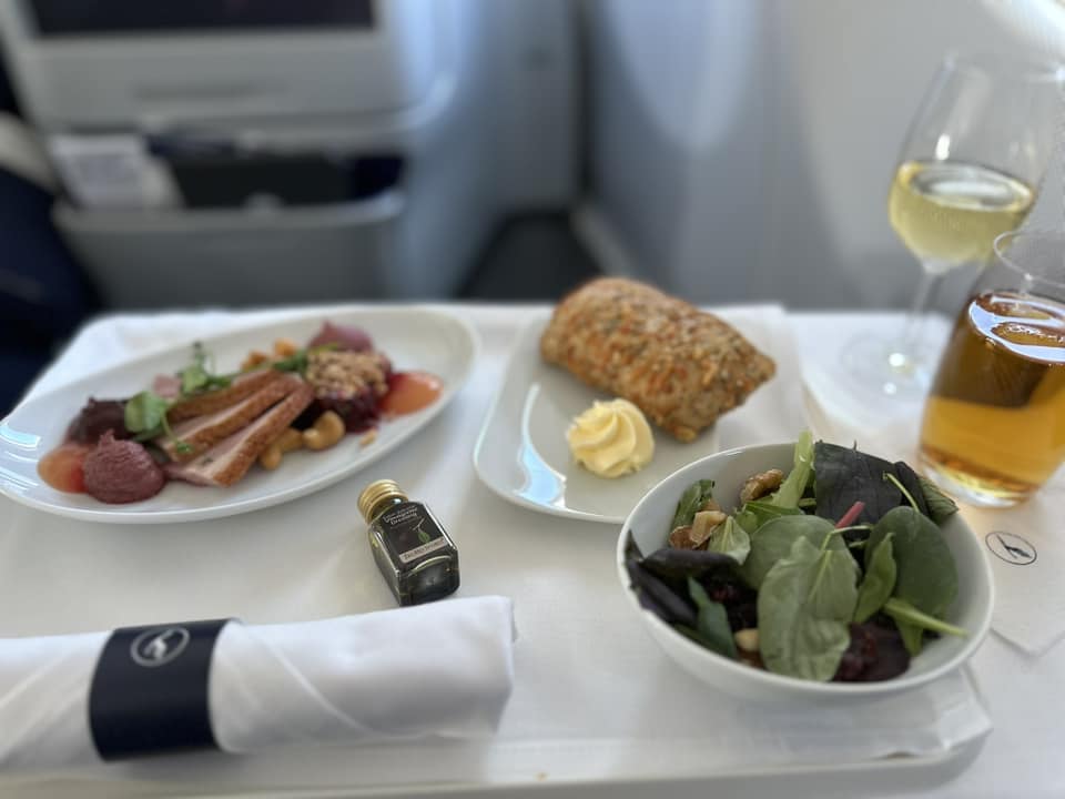 For those who appreciate beer, Lufthansa’s bar includes renowned brews like the Warsteiner Premium Lager and the refreshing Erdinger wheat beer. The beverage repertoire extends beyond wine and beer to an extensive list of liqueurs and spirits, featuring iconic names such as Jack Daniel’s and Bombay Sapphire Gin.ย Master of Wine Markus Del Monego oversees the selection of wines to be served in Lufthansa Business Class.