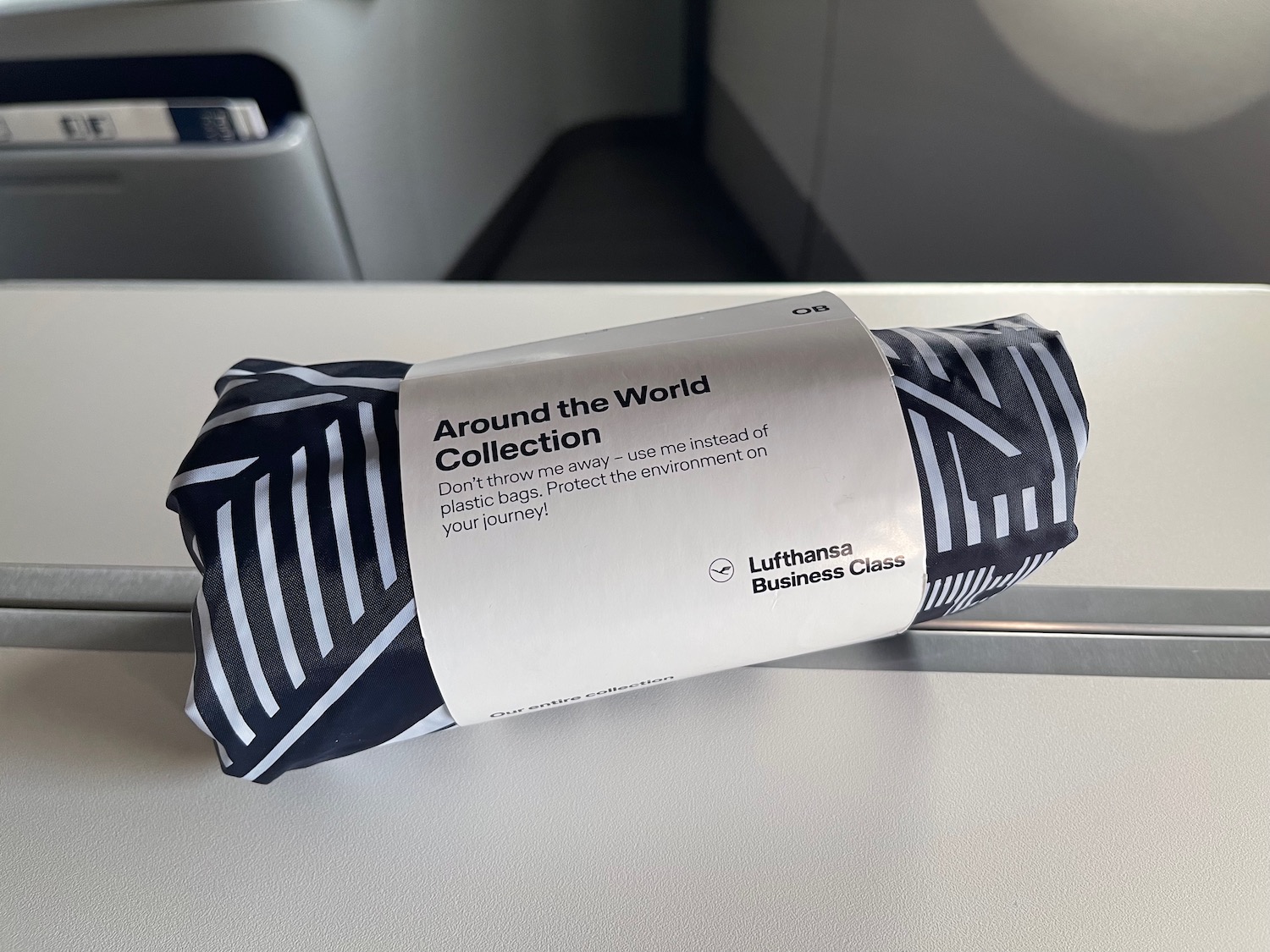 Passengers are provided with a pillow and blanket elegantly wrapped in a ribbon, with storage pockets on the side of the seat holding essentials such as a water bottle and an amenity kit. For extended flights, Lufthansa goes the extra mile by offering a seat topper, resembling a mattress pad, ensuring additional cushioning for a restful journey