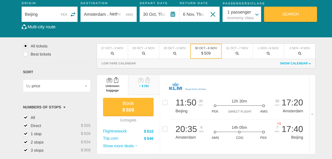 KLM are offering discounted nonstop flights from Beijing, China to Amsterdam, Netherlands starting at only US$509 for a round trip!
