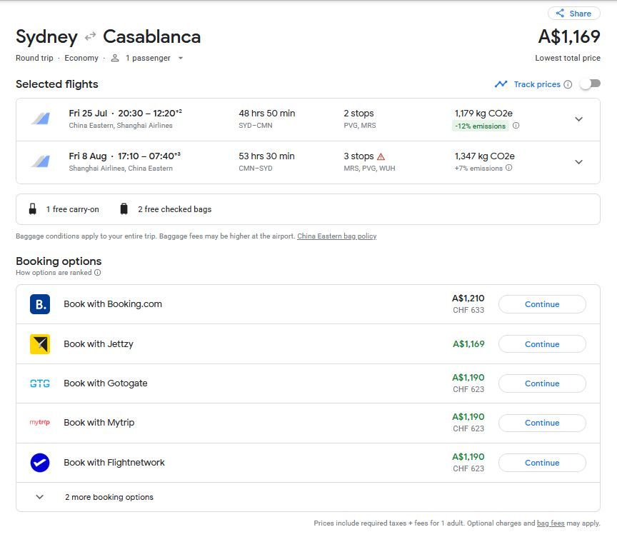Currently, you can book your eco round-trip ticket from Sydney, Australia to Casablanca, Morocco for only A$1,169.
