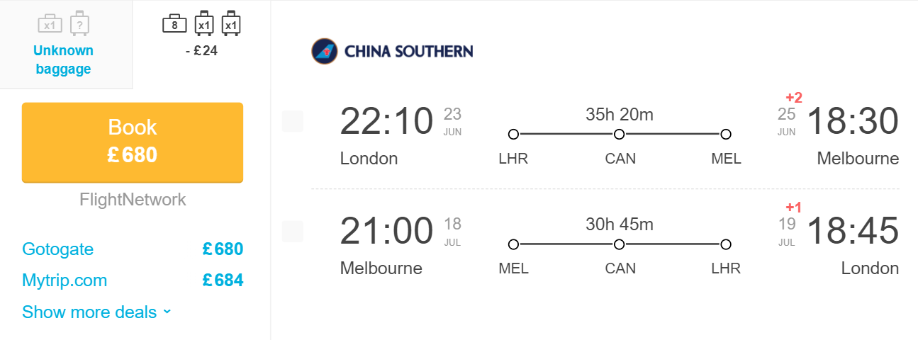 To get this deal you can use theย flight search boxย above. Just enter the travel dates, origin, and destination as seen in the deal description (screenshot) and select the cabin class. Of course, you can adjust your origin and destination as well as your desired dates of travel (though prices and availabilities may change). You can also book the flights at: Note: You are usually better off booking direct with the airline. If you book through a travel agency and something goes wrong then the airline may well refer you back to the travel agency to fix the problem. That can be tricky if the agency is only contactable via the internet.