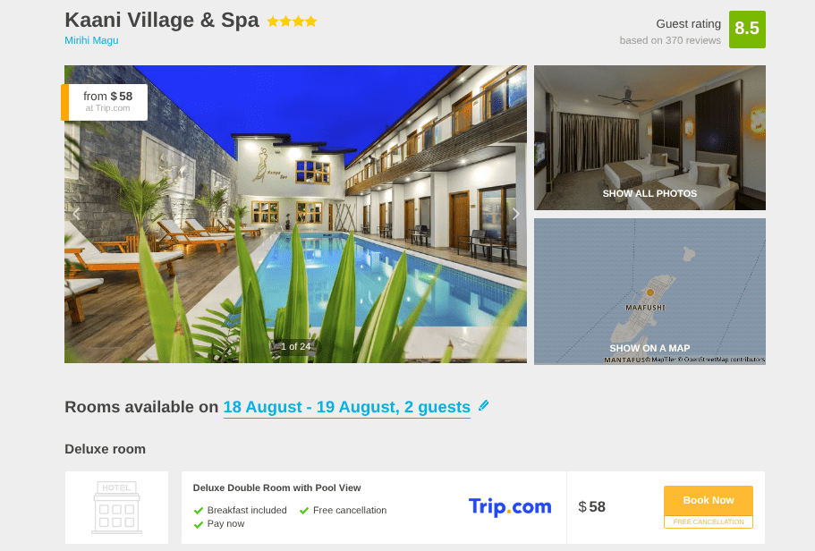 Take advantage of this amazing deal and book a Deluxe Room at the top-rated 4* Kaani Village and Spa from only US$ 58 per night/room including breakfast, free wifi and all taxes and fees (based on booking for 2 people in 1 room)!