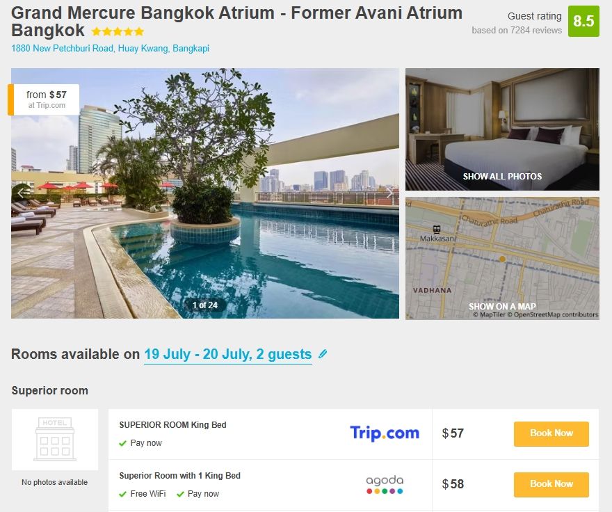 Book your stay at this well-rated 5-star Grand Mercure Bangkok Atrium, Bangkok, Thailand with fabulous reviews for just US$57 per room/ night with (incl. of tax).