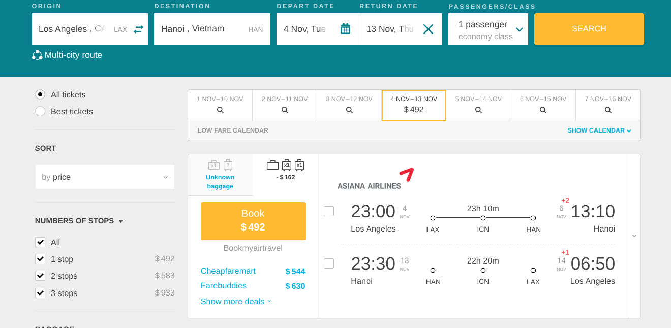 Currently, you can book your round-trip ticket from Los Angeles, California to Hanoi, Vietnam for only US$492.